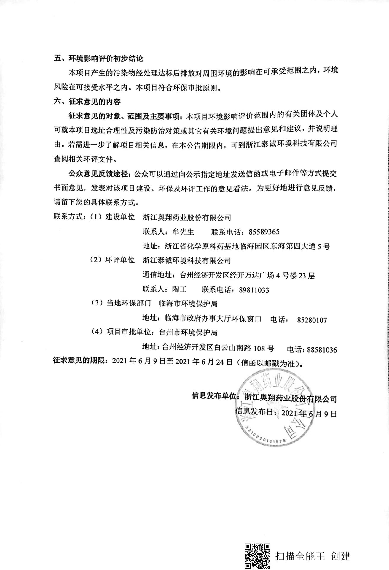 特色原料药及关键中间体产业项目二期技改环评信息公告